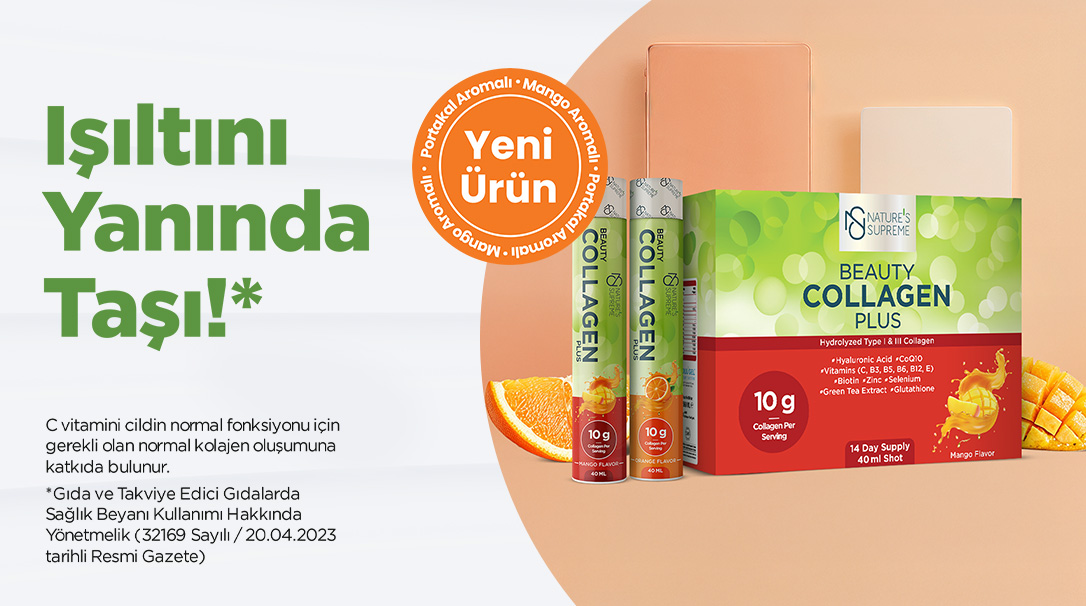 C vitamini cildin normal fonksiyonu için gerekli olan normal kolajen oluşumuna katkıda bulunur.*