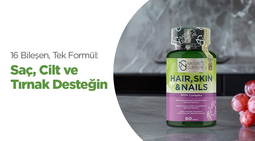 Nature’s Supreme Saç, Cilt ve Tırnak Desteği’ni keşfedin, günlük rutininize uygun formu seçin.