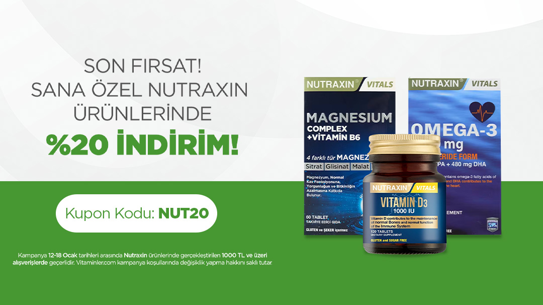 Kampanya 12-18 Ocak tarihleri arasında Nutraxin ürünlerinde gerçekleştirilen 1000 TL ve üzeri alışverişlerde geçerlidir.