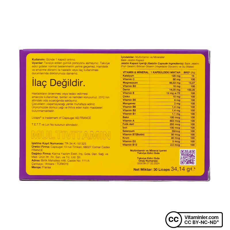 - 12 vitamin ve 7 mineral desteğini bir arada sunar