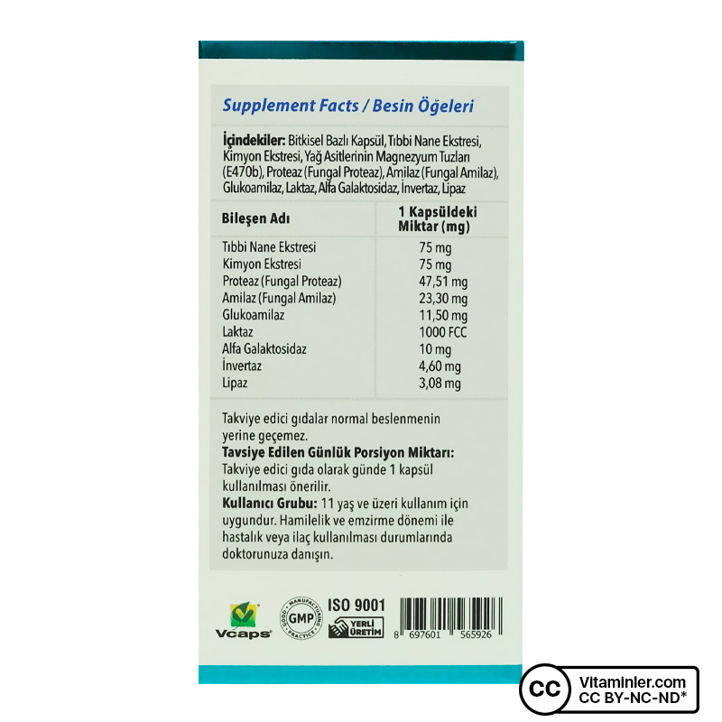 - Sindirim enzimleri ve bitkisel ekstrelerin karışımından oluşur.