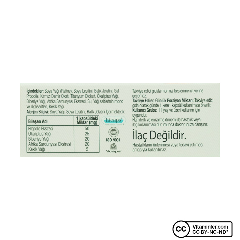 - Propolis ve pelargonium sidoides ekstresi ile desteklenmiştir.