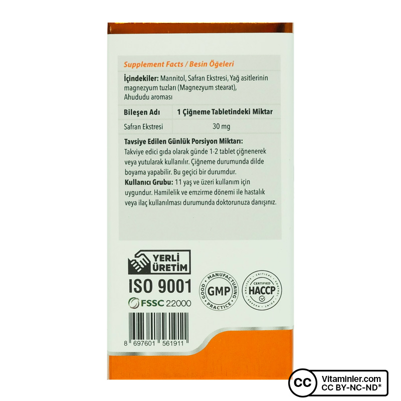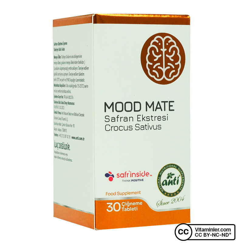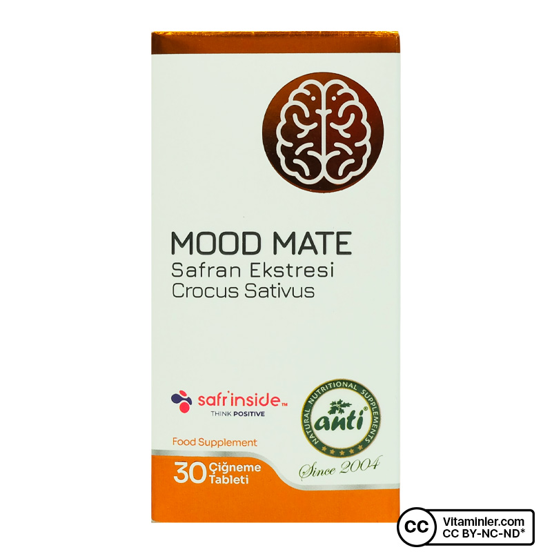 Anti Mood Mate Safran Ekstresi 30 Çiğnenebilir Tablet, her kullanımda 30 mg safran ekstresi sunan özenle geliştirilmiş bir formülasyona sahiptir. İçeriğinde patentli safr’Inside® ham maddesi bulunan bu ürün, çiğnenebilir tablet formu sayesinde pratik ve kolay bir kullanım deneyimi sağlar.