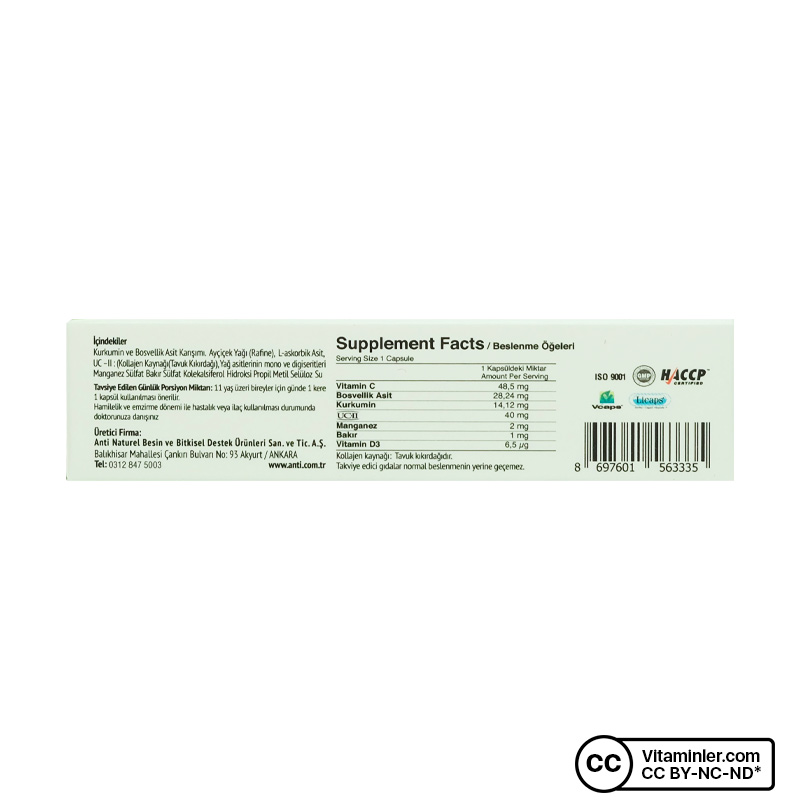 - Boswellia ve UC-II patentli ham maddeler içerir.