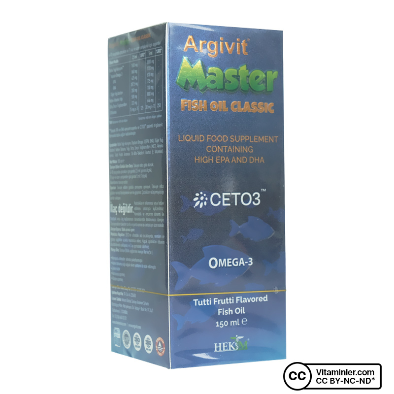 Argivit Master Balık Yağı Şurup; içeriğinde bulunan EPA ve DHA Omega-3 yağ asitleriyle çocuklardan yetişkinlere kadar geniş bir yaş aralığına hitap eden eder. Günlük Omega-3 ihtiyacını desteklemek amacıyla geliştirilen bu formül, karışık meyve (tutti frutti) aroması ve sıvı yapısı sayesinde pratik ve lezzetli bir tüketim imkanı sunar.