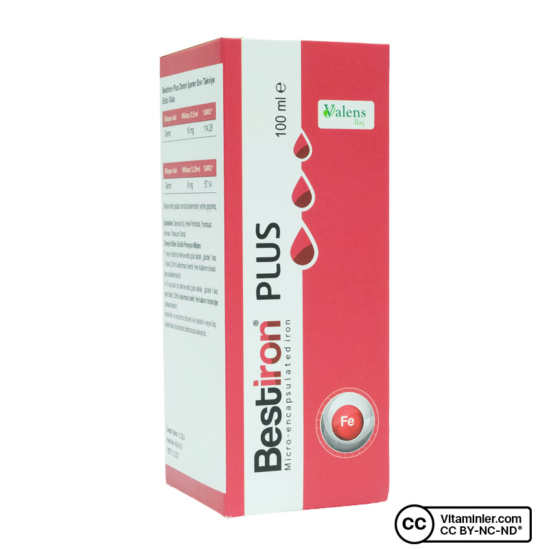 Bestiron Plus Demir Şurup, sıvı formda demir içeren bir takviye edici gıdadır. Her servisinde 8 mg demir bulunur. İçeriğinde kullanılan mikroenkapsülasyon teknolojisi, demirin formüle edilme biçimini destekler ve ürünün içeriğinin korunmasına katkı sağlar. Frambuaz aroması ile hoş bir tat profiline sahip olan şurup, pratik formuyla günlük kullanıma uygun şekilde geliştirilmiştir.