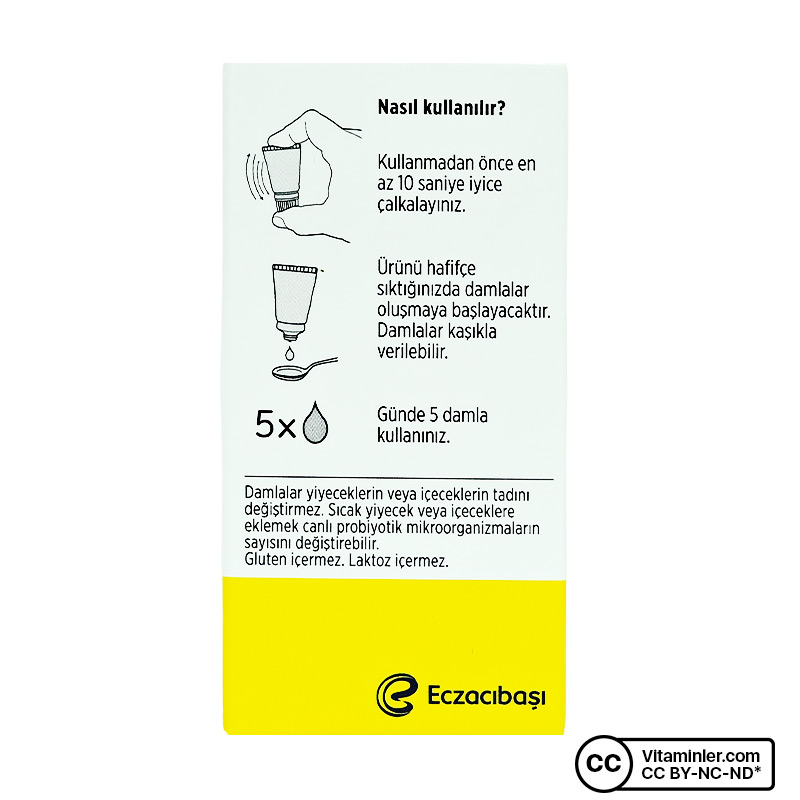 - Damlalar kaşıkla verilebilir. Damlalar yiyecek ve içeceklerin tadını değiştirmez.