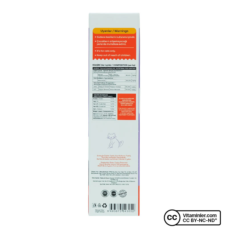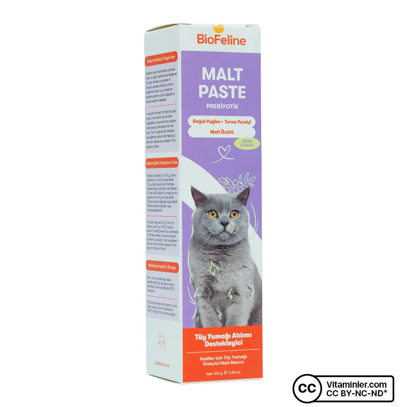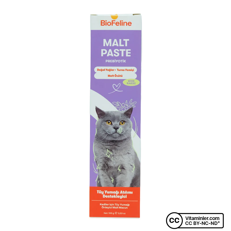 Biofeline Kedi Macunu Malte Paste, kedilerin kendini temizlerken yuttuğu tüylerin ve sindirilemeyen diğer bileşenlerin vücuttan atılması için gerekli lif ihtiyacını destekler. Malt ekstresi ve bitkisel yağlar içeren bu özel formül, sindirim sisteminde biriken tüy yumaklarının atılmasına yardımcı olurken aynı zamanda genel sindirim sistemini de destek olur. Biofeline Kedi Macunu, şeker içermeyen formülasyonu ile öne çıkar.