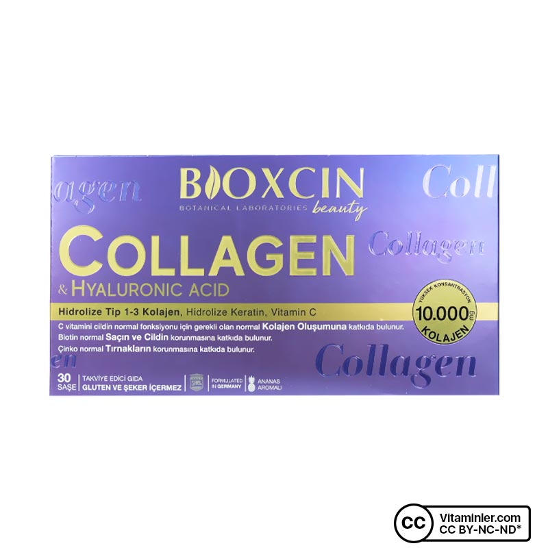 Bioxcin Beauty Collagen saşe formu, hyalüronik asit, hidrolize keratin, biotin, E ve C vitaminleri ile zenginleştirilen 10.000 mg hidrolize Tip I ve Tip III kolajeni bir arada bulunduran takviye edici gıdadır. Kolajen molekül büyüklüğü 2.000 Dalton’dur. Ananas aromasıyla kullanım kolaylığı sağlar. Gluten ve şeker içermez.