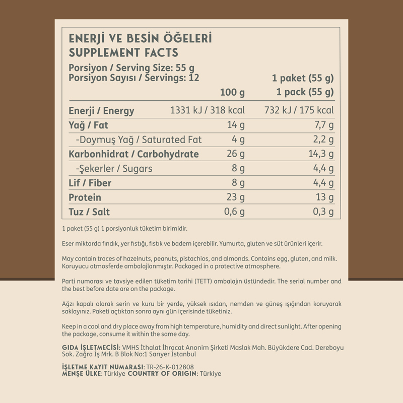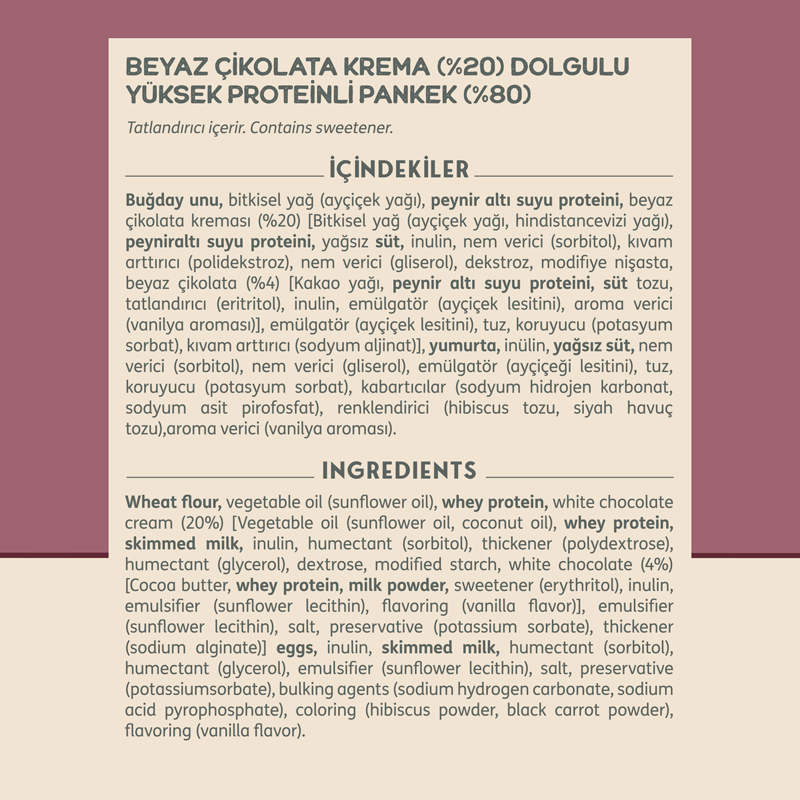 - Lif oranları: Çikolata ve kurabiye kreması 4.4 g, red velvet 4.1 g