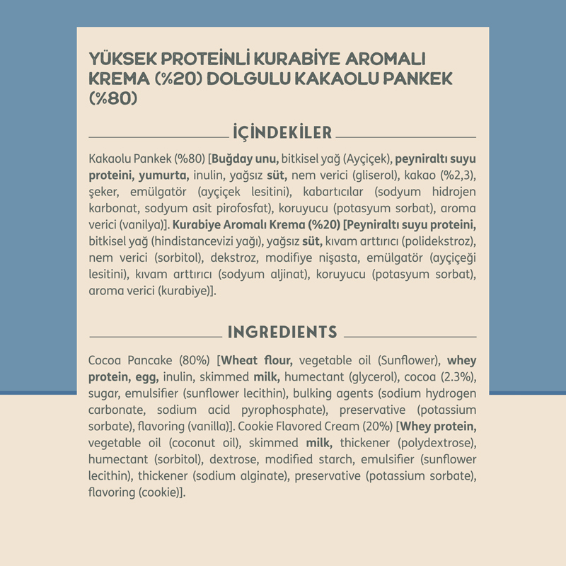 Clean Powders Protein Pancake, her porsiyonda 13 g protein sağlayan, pratik ve lezzetli bir atıştırmalıktır. Çikolata ve kurabiye kreması aromaları 4,4 g lif içerirken, red velvet aroması 4,1 g lif ile desteklenmiştir. Aynı zamanda düşük kalori yapısıyla, günlük beslenmesini dengelemek isteyenler için ideal bir tercih olabilir.