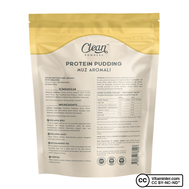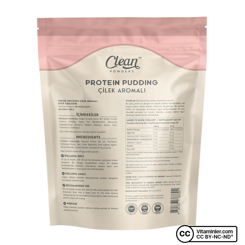 Clean Powders Protein Pudding, tatlı krizlerine son vermek isteyenler ve beslenme düzenlerine dikkat edenler için özel olarak formüle edilmiştir. Hem lezzetli hem de protein açısından zengin olan bu puding, sadece 91 kalori içerir ve her porsiyonda 20 gram protein sunar.