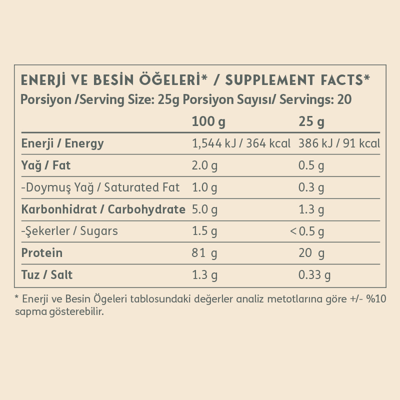 - Her porsiyonda 20 gram protein
