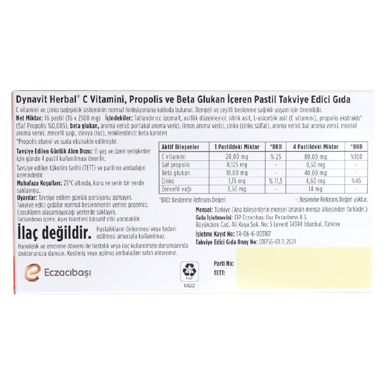 - C vitamini, propolis, beta glukan, çinko ve zencefil yağı içerir.