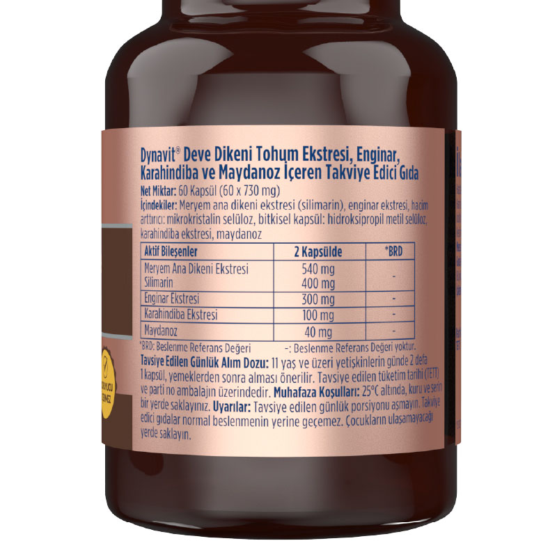 Dynavit Milk Thistle Complex, bitkisel ekstrelerin karışımından oluşan bir gıda takviyesidir. Deve dikeni veya meryem ana dikeni olarak bilinen milk thistle ana bileşenidir. Bitkisel kapsül içermektedir. İçeriğindeki Enginar %2,61 oranında Sinarin içerir.