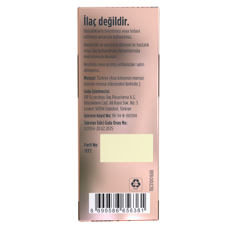 - Gluten, laktoz, şeker ve renklendirici içermez