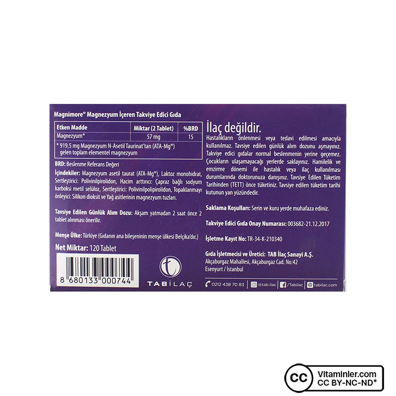 Magnezyum ATA (Magnezyum Asetil Taurat) formunda magnezyum desteği sağlar. Magnimore patentli ATA-Mg magnezyum içeriği ile günlük kullanıma uygun bir magnezyum takviyesidir. Magnezyum ATA, suda kolayca çözünebilen ve diğer magnezyum kaynaklarıyla benzer biyoyararlanım sunabileceği öne sürülen farklı bir formudur.