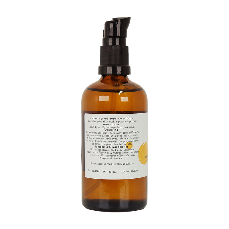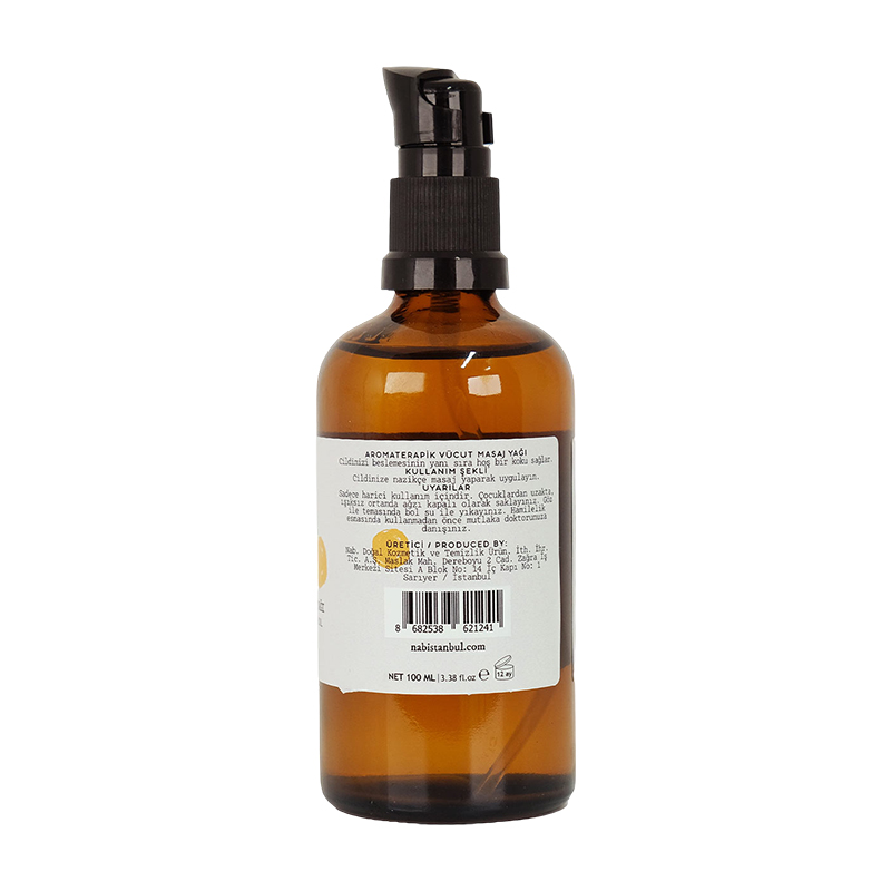 Nab. Aromaterapik Vücut Masaj Yağı, %100 doğal içeriklerden oluşan bir masaj yağıdır. Aromaterapi anlayışına uygun olarak geliştirilen bu masaj yağının içerisinde birçok doğal bileşen bulunur. Günlük kullanıma uygun olan masaj yağını vücudunuza uygulayabilirsiniz. Ek olarak banyo yağı olarak da kullanıma uygundur. Bunların yanı sıra Nab. Aromaterapik Vücut Masaj Yağı; hoş kokusu sayesinde dikkat çeker.