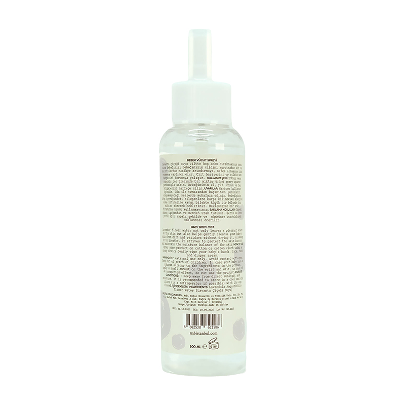 Lavanta çiçeği suyu içeren Nab. Bebek Vücut Spreyi, bebek cildinin temizlenmesine ve ferahlamasına yardımcı olur. İhtiyaç duyulduğu anda vücuda kolaylıkla uygulanabilir. Ek olarak sprey aparatı ile öne çıkar ve kullanımı pratiktir.