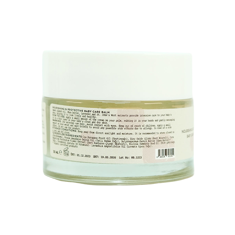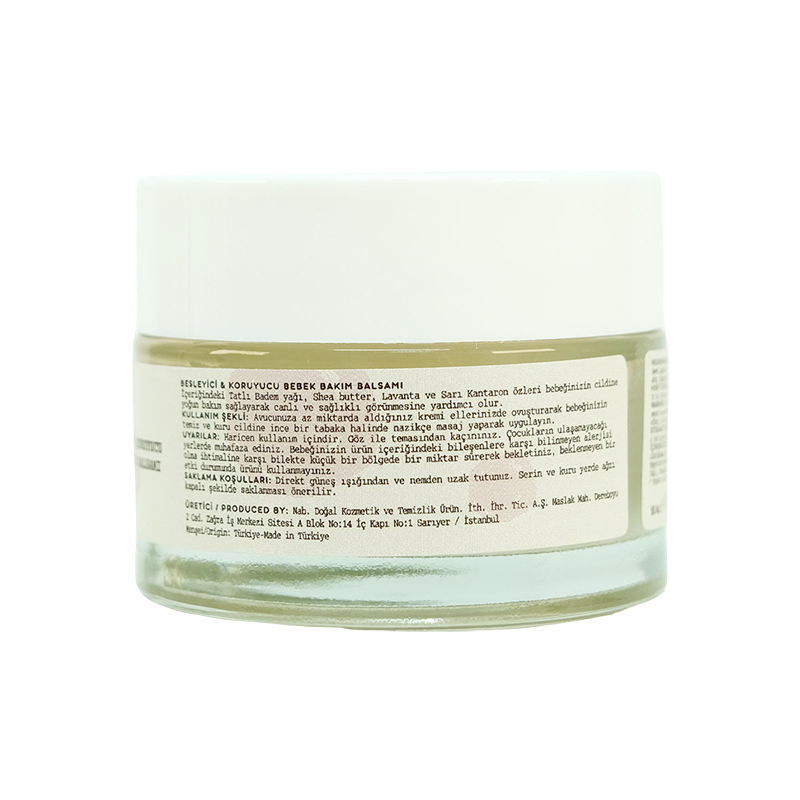 Nab. Besleyici & Koruyucu Bebek Bakım Balsamı, özel formülü ile öne çıkar. İçeriğindeki nan-nano çinko oksit minerali ve bitki özleri sayesinde cilt tahrişleri durumlarında kullanılmaya uygundur ve cildi yatıştırmaya yardımcı olur. Bunların yanı sıra içerisinde bulunan tatlı badem yağı, shea butter ve E-vitamini ile cildi besleyici özelliklere sahiptir. Ayrıca formülü, doğal yağların birleşiminden oluşur.