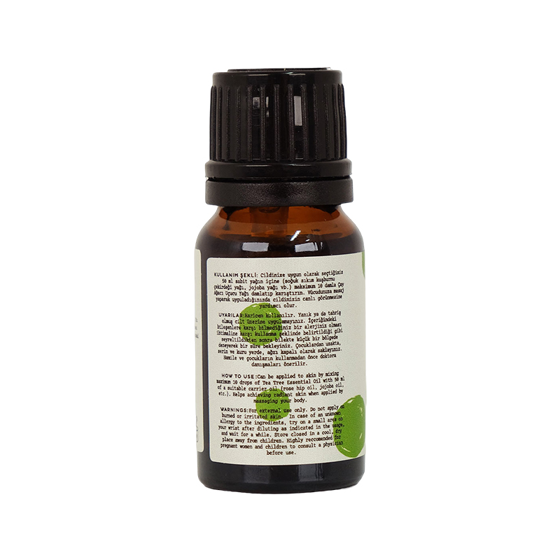 Cildinize uygun olarak seçtiğiniz 50 ml sabit yağın içine (soğuk sıkım kuşburnu çekirdeği yağı, jojoba yağı vb.) maksimum 10 damla Çay Ağacı Uçucu Yağı damlatıp karıştırın. Vücudunuza masaj yaparak uyguladığınızda cildinizin canlı görünmesine yardımcı olur.