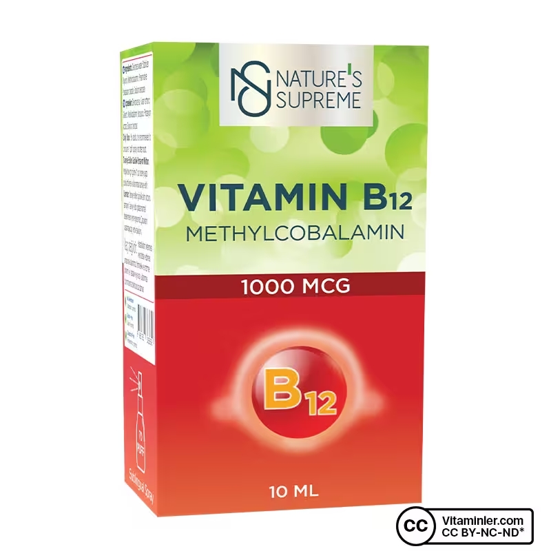 Nature's Supreme Vitamin B12 1000 Mcg Methylcobalamin Sprey, metilkobalamin formunda B12 vitamini içeren pratik kullanımlı bir gıda takviyesidir. Mecobal Active markalı, aktif B12 formu içermesiyle dikkat çeken bu ürün, dilaltı sprey formu sayesinde hızlı emilim sağlar. Tatlandırıcı, renklendirici ve gluten içermeyen formülüyle 70 günlük kullanım sunar.