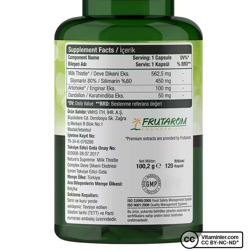 Nature's Supreme Milk Thistle Complex bitkisel kaynaklı 3 spesifik ekstreyi bir araya getiren bir formüle sahiptir. Nature's Supreme Milk Thistle Complex %100 bitkisel içeriklidir. Tüm kapsüllerde enginar, karahindiba ve deve dikeni ekstrelerinin sinerjik etkilerinin birleşimi standardize edilmiştir.