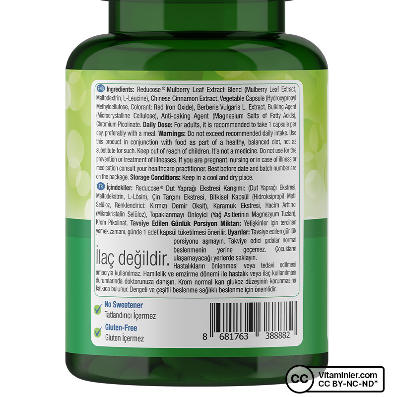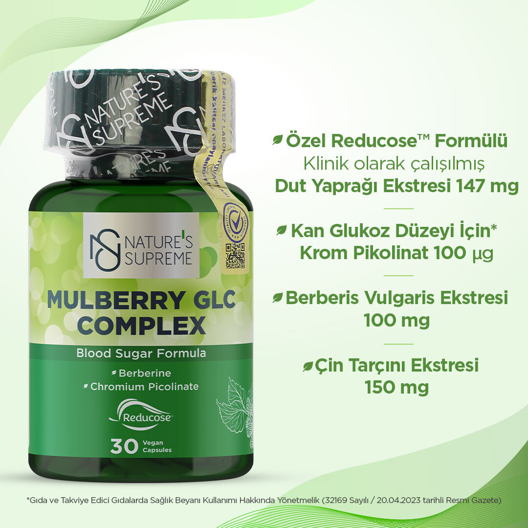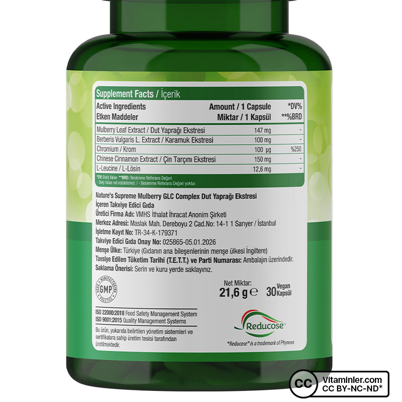 Nature’s Supreme Reducose Mulberry GLC Complex, dut yaprağı ekstresi (Reducose®), berberis vulgaris ekstresi (berberin), krom pikolinat, Çin tarçını ekstresi ve lösin içeren bir gıda takviyesidir.