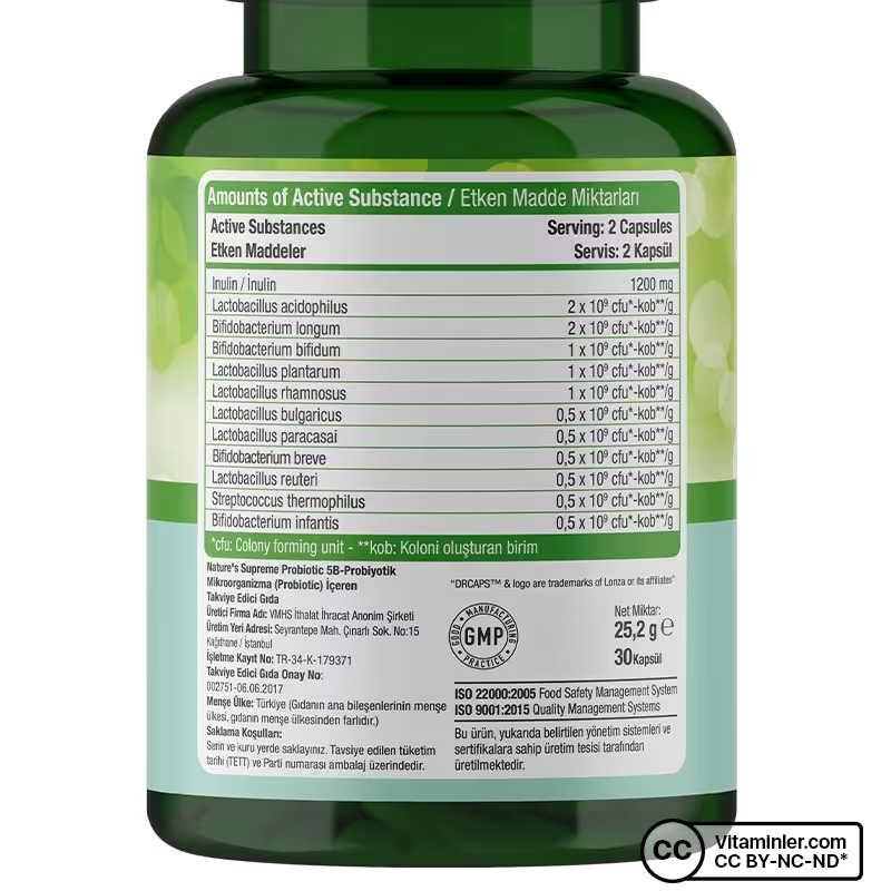 Nature's Supreme Probiotic 5B, probiyotik mikroorganizmalar içerir. Probiyotik mikroorganizma yararları şu şekildedir;