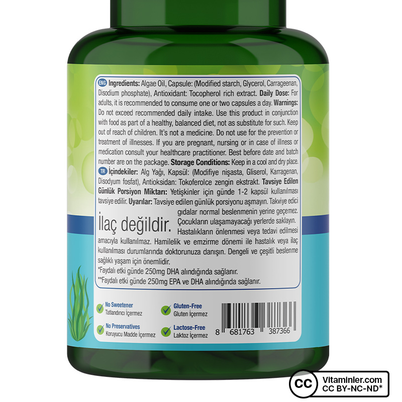 -Bitkisel & Vegan: Tamamen alglerden elde edilir, hayvansal içerik yoktur