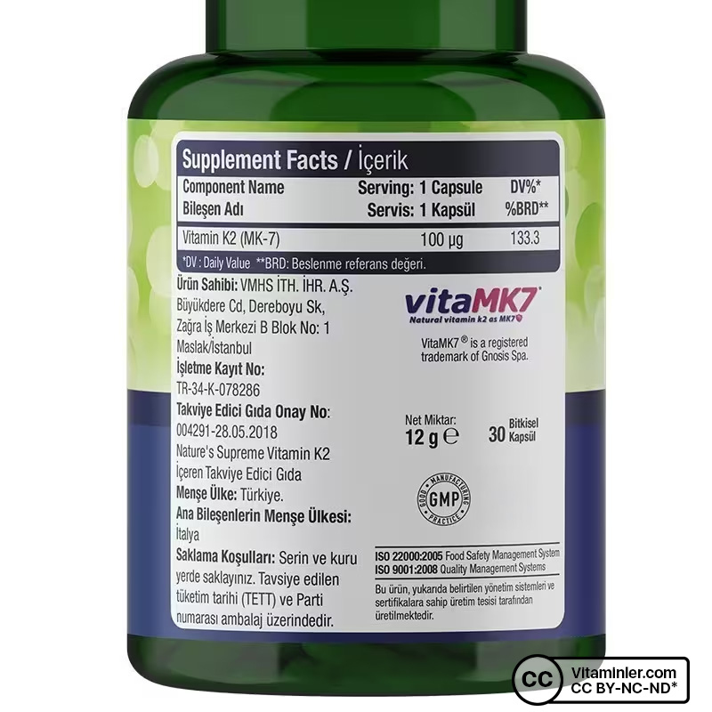 Nature's Supreme Vitamin K2 100 Mcg 30 Kapsül faydaları, kullanımı, özellikleri ve kullanıcı yorumları hakkında detaylı bilgi alabilir; ürünü uygun fiyat ve ücretsiz kargo fırsatı ile Vitaminler.com’dan hemen satın alabilirsiniz.