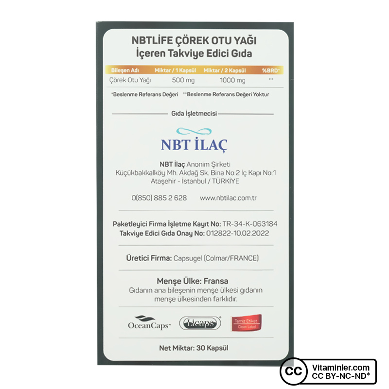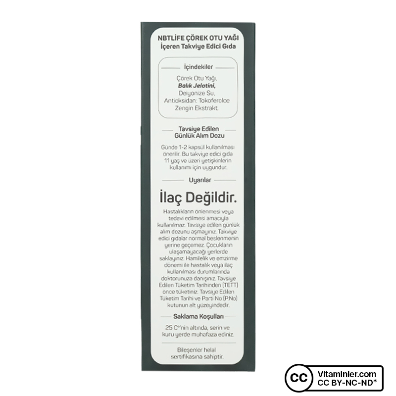 Nnbtlife Çörek Otu Yağı; soğuk sıkım yöntemiyle elde edilen ve yüksek timokinon oranıyla öne çıkan bir gıda takviyesidir. Balık jelatininden elde edilen kapsül yapısı ile öne çıkar. Üretiminde kullanılan özel Licaps (likit kapsül) teknolojisi; sızıntı, patlama ve oksidasyon risklerini minimize eder.