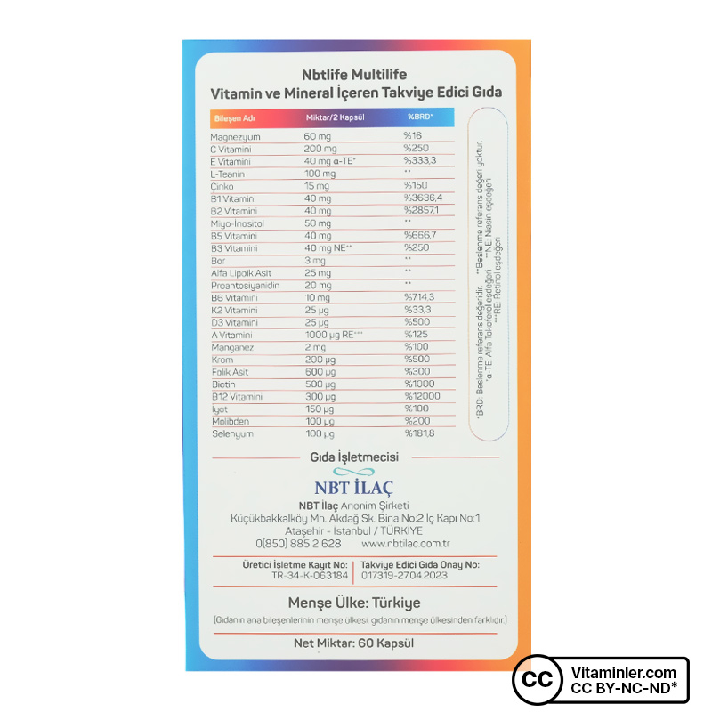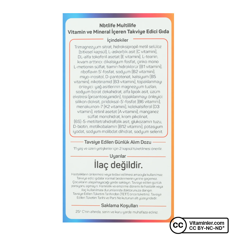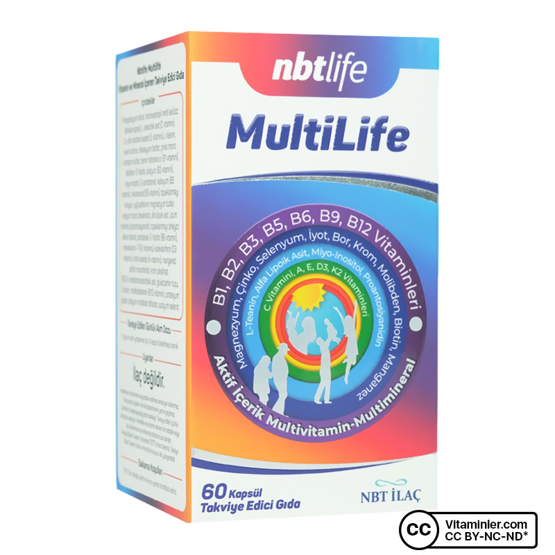 Nbt Life Multilife; 12 vitamin ve 9 minerali, 4 farklı özel bileşenle aynı formülde buluşturan bir gıda takviyesidir. İçeriğinde yer alan L-teanin, proantosiyanidin ve miyo-inositol bileşenlerine, yüksek emilim imkanı sunmasıyla bilinen Na-R-LA formundaki alfa lipoik asit eşlik eder.