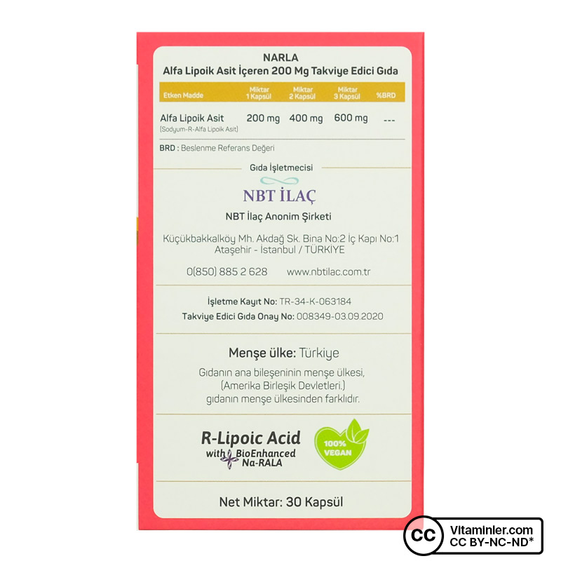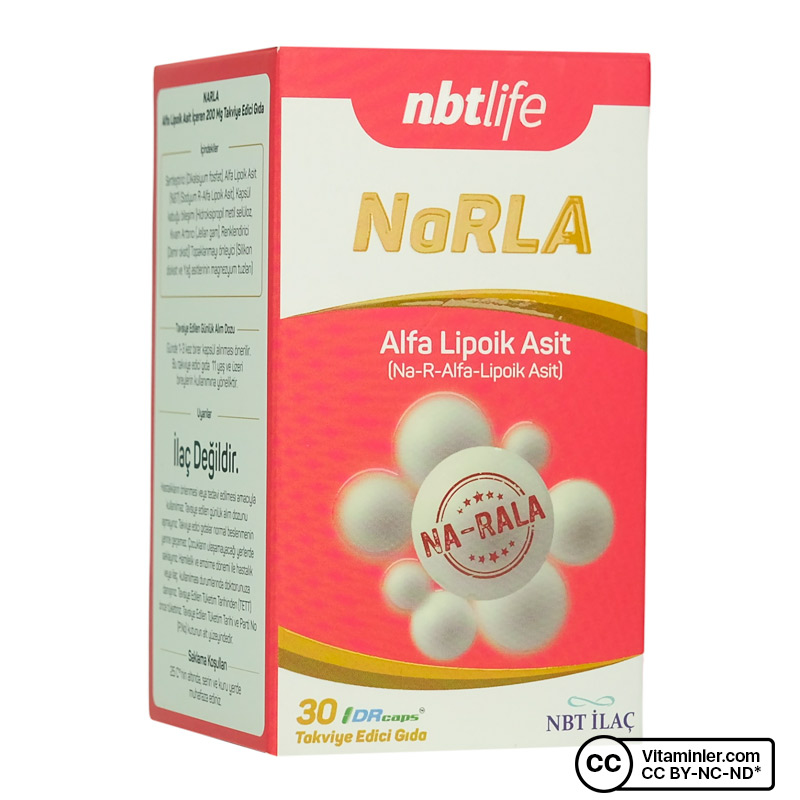 Nbt Life Narla Alfa Lipoik Asit, Na-R (Sodyum R-Alfa Lipoik Asit) formunda geliştirilmiş bir takviye edici gıdadır. Her bir kapsül 200 mg alfa lipoik asit içerir. 30 kapsül içeren formu ile günlük kullanıma uygundur.
