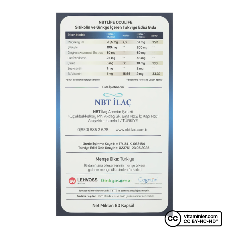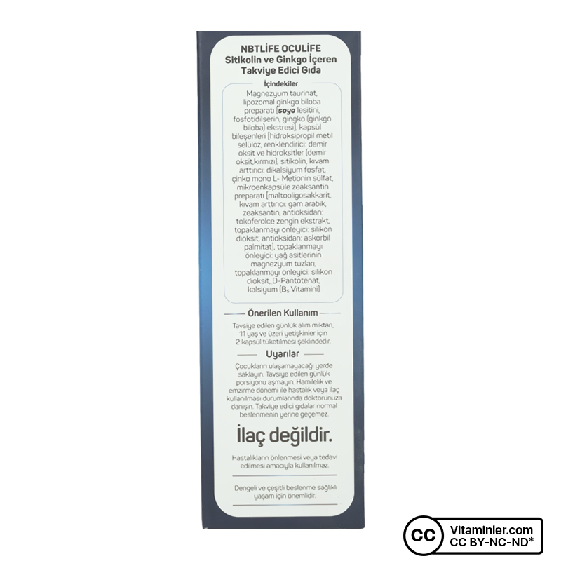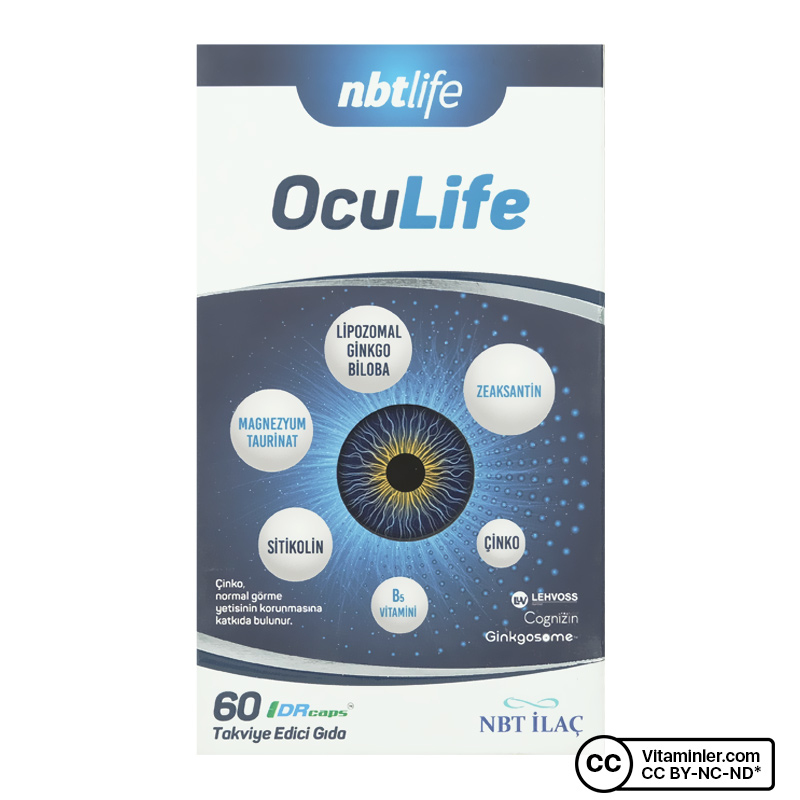 Nbt Life Oculife; sitikolin ve zeaksantini, vitamin-mineral kompleksiyle bir araya getiren kompleks bir gıda takviyesidir. Her kapsülünde 100 mg sitikolin ve 28 mg magnezyum bulunduran gıda takviyesi; çinko, B5 vitamini ve bitkisel ekstrelerle zenginleştirilmiş bir içeriğe sahiptir.