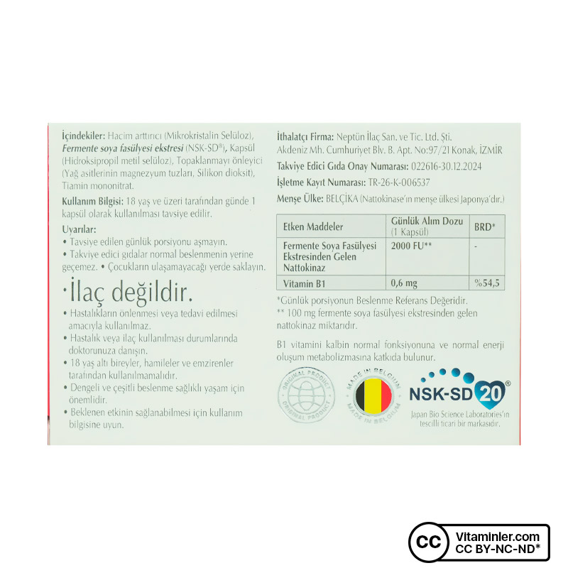 - Fermente soya fasulyesi ekstresinden elde edilen Nattokinaz içerir