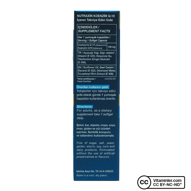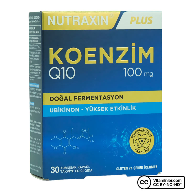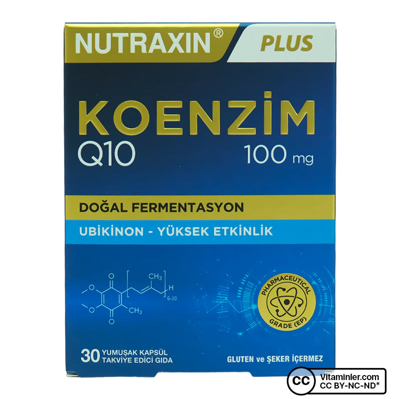 Nutraxin Koenzim Q10 30 Kapsül, her servisinde 100 mg koenzim Q-10 takviyesi sunar. Formülünde; şeker, nişasta, tuz, maya, gluten, soya, mısır ve süt ürünleri gibi potansiyel alerjenler yer almaz. Bunların yanı sıra; sentetik renklendirici, tatlandırıcı ve koruyucu da bulunmaz.