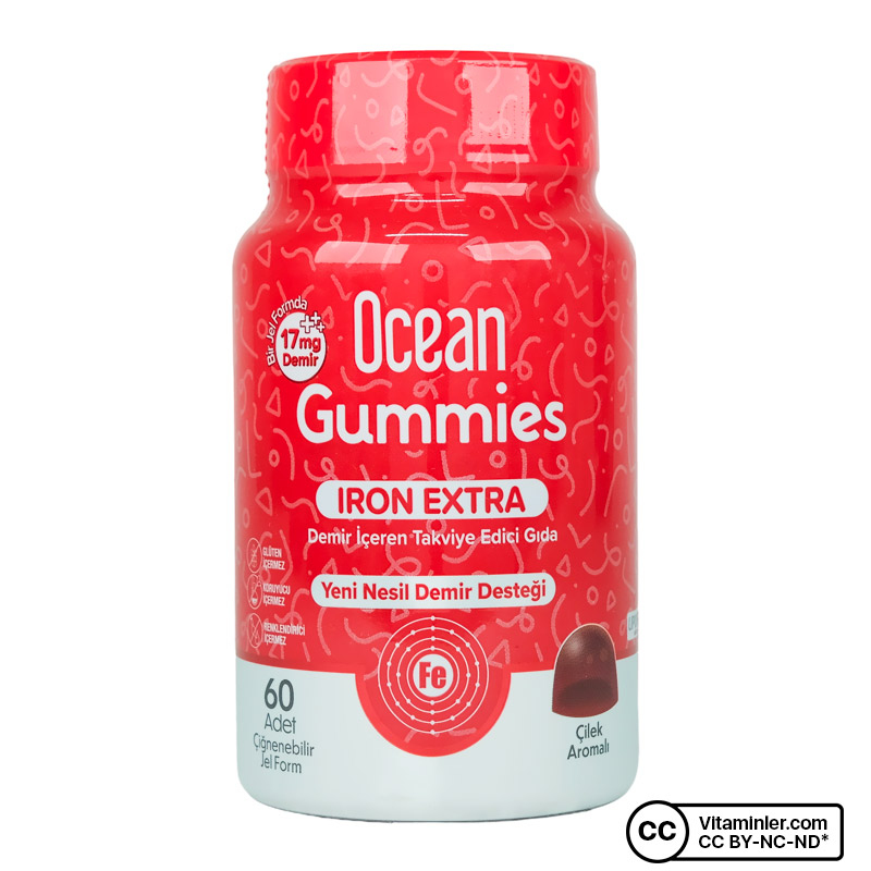 Ocean Gummies Iron Extra 60 Çiğnenebilir Form Çilek içerisinde bulunan bileşenlerin faydalarını inceleyecek olursak: