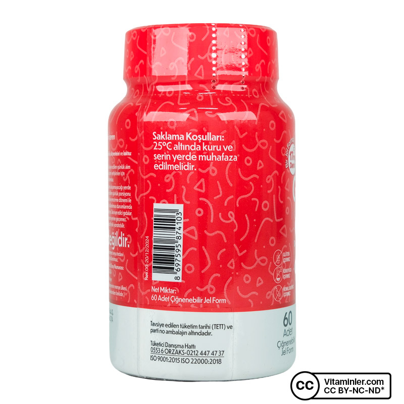 Tavsiye edilen günlük alım miktarı 11 yaş ve üzeri yetişkinler için 1 çiğnenebilir jel formdur.
