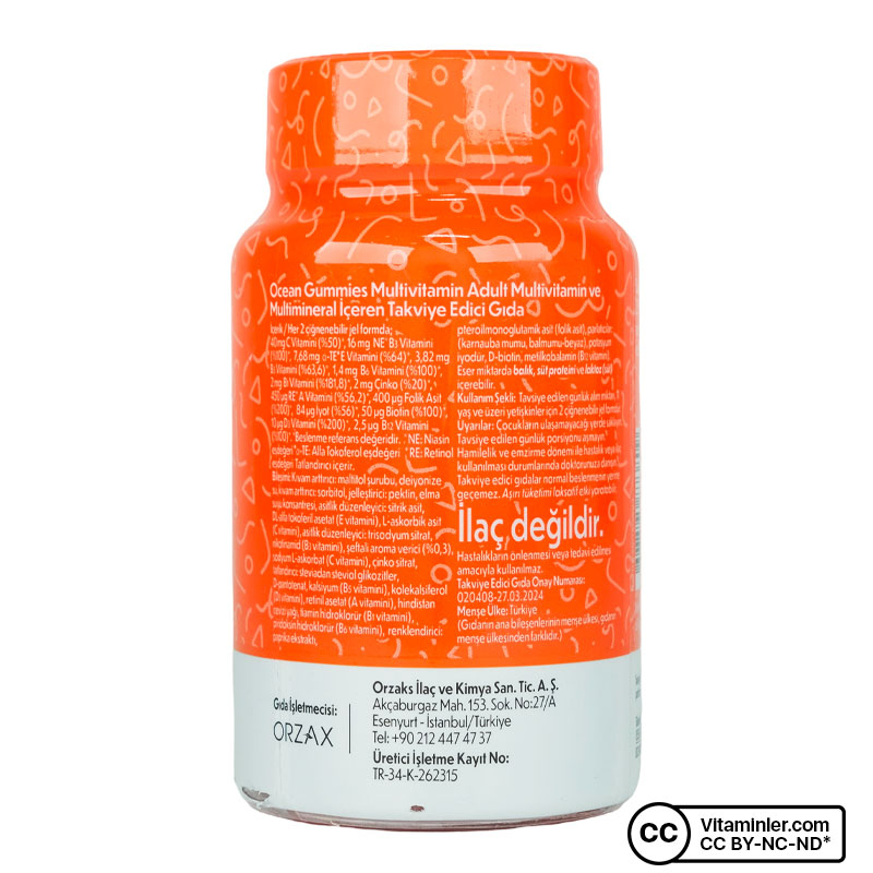 Ocean Gummies Multivitamin Adult 60 Çiğnenebilir Form Şeftali, 11 vitamin ve 2 mineral içeren, çiğnenebilir jel formda geliştirilmiş bir gıda takviyesidir. Şeftali aroması sayesinde keyifli bir tüketim deneyimi sunarken, pratik formu ile günlük kullanımı kolaylaştırır. İçeriğinde glikoz şurubu, jelatin, yapay tatlandırıcı, koruyucu ve yapay renklendirici bulunmamasıyla sade ve temiz bir formül sunar. Yetişkinlerin kullanımına uygun olarak geliştirilen bu ürün, günlük rutine lezzetli ve pratik bir destek olarak dahil edilebilir.