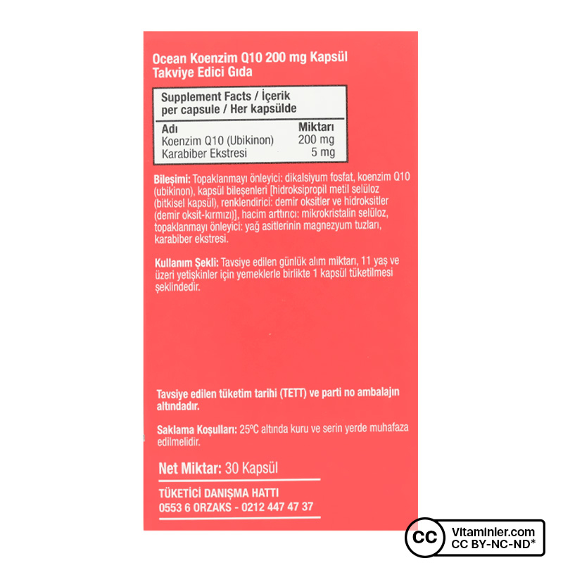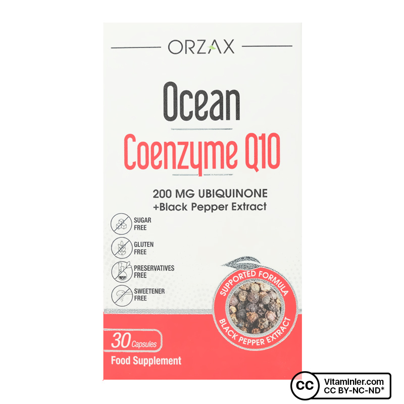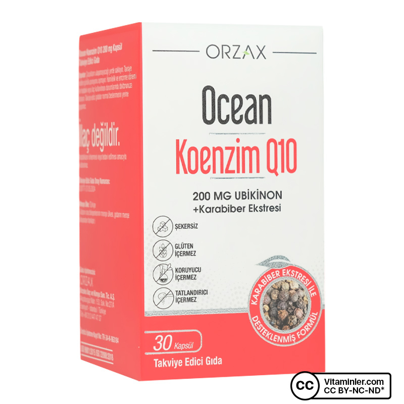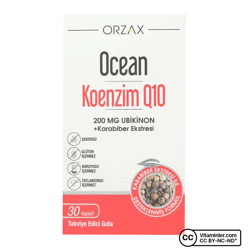 Ocean Koenzim Q10 200 mg 30 Kapsül, her kapsülde koenzim Q10 ile birlikte 5 mg karabiber ekstraktı içeren bir gıda takviyesidir. İçeriğindeki karabiber ekstraktı ile formülü desteklenen ürün, kapsül formu sayesinde günlük kullanıma pratik bir şekilde dahil edilebilir.