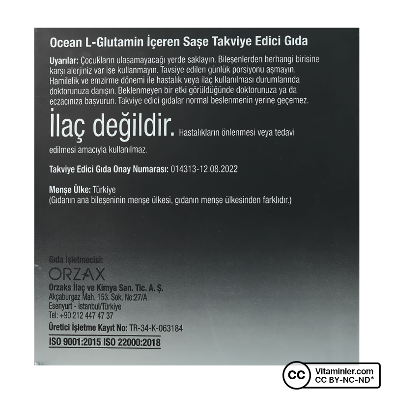 Ocean L-Glutamin 5000 Mg 60 Saşe, L-Glutamin içeren takviye edici gıdadır. Glutamin; hem besinler yoluyla alınabilen hem de vücut tarafından üretilebilen, proteinlerin yapı taşlarından biri olan aminoasitler arasında yer alır.