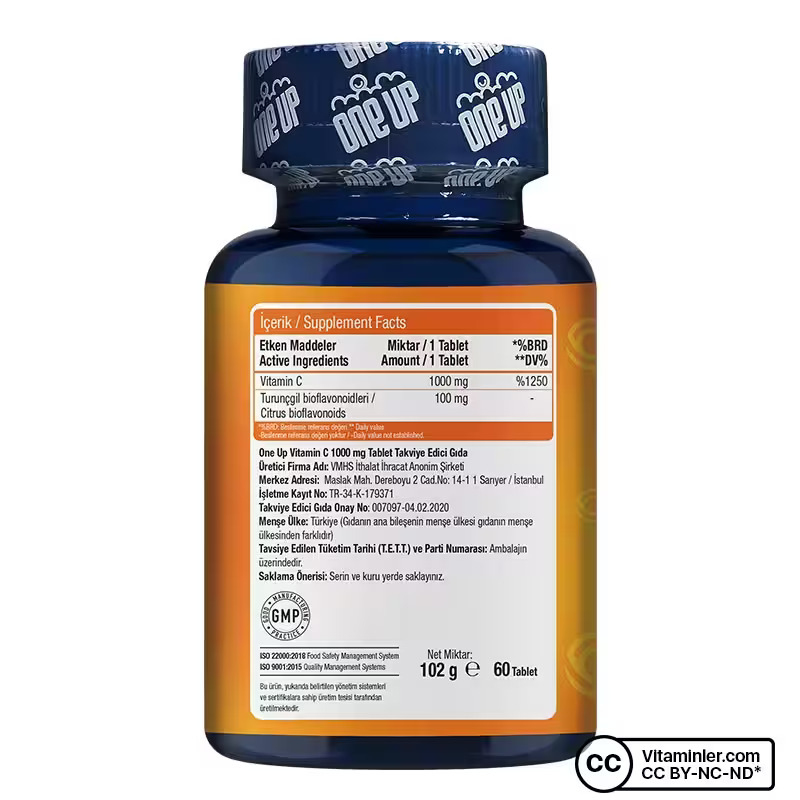 - Her tablette 1000 mg C vitamini ve 100 mg turunçgil bioflavonoid içeriği