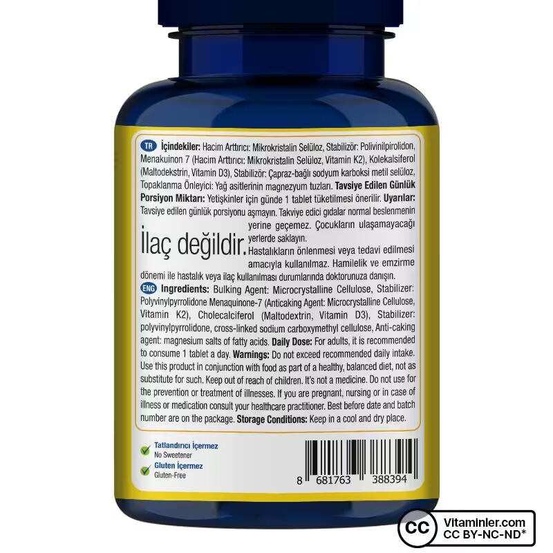 - Her servisinde 1000 IU D3 vitamini ve 25 mcg K2 vitamini