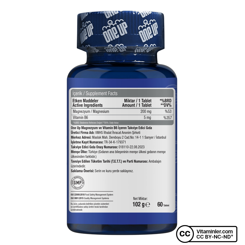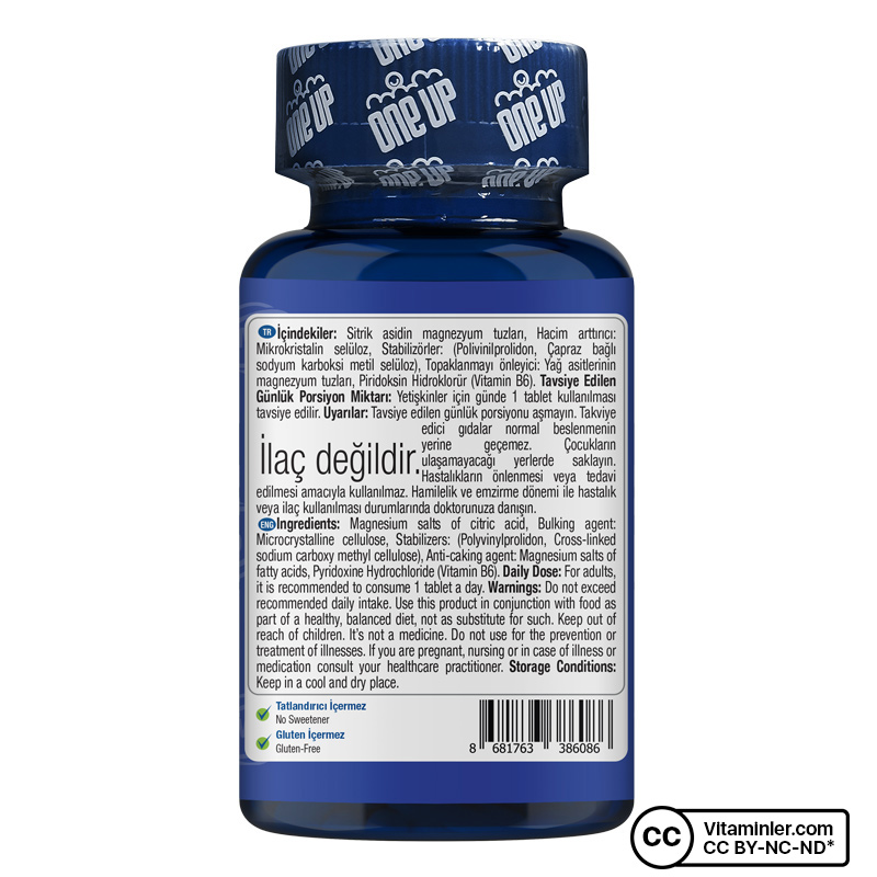 One Up Magnezyum Sitrat B6 Vitamini, her tablette 200 mg magnezyum ve 5 mg B6 vitamini içerir. Ayrıca, 60 kapsülden oluşan yapısı ile uzun bir kullanım süresi sunar. Ek olarak formülünde tatlandırıcı ve koruyucu bileşenler bulunmaz.