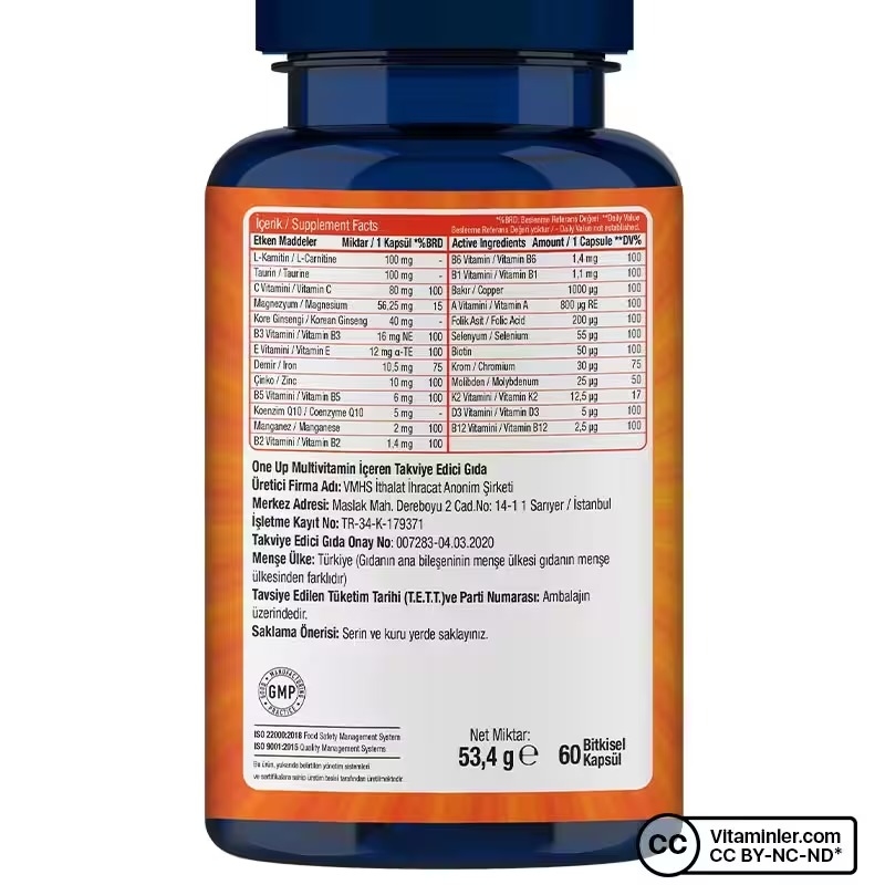One Up Multivitamin Enerji, vitamin ve mineraller yönünden zenginleştirilmiş bir multivitamin takviyesidir. İçeriğinde 25 farklı aktif bileşen yer almaktadır. Bitkisel kapsül formunda sunulan bu ürün; A, B, C, D ve E vitaminleri ile çinko, magnezyum, selenyum gibi mineralleri bir arada sunar.