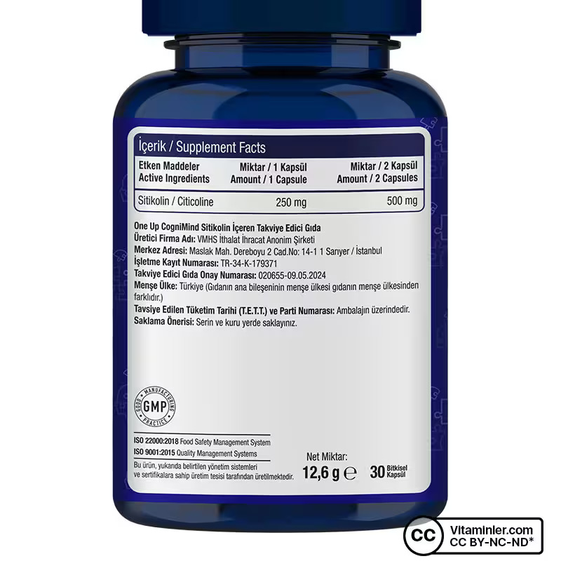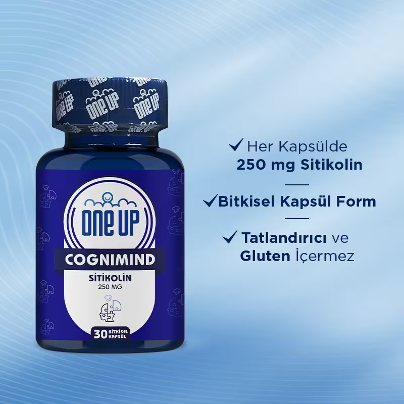 One Up Cognimind Sitikolin, her kapsülde 250 mg sitikolin içeren bir takviye edici gıdadır. Sitikolin, CDP-Kolin (Sitidin Difosfat-Kolin) adıyla da bilinir ve vücutta doğal olarak bulunan bir bileşiktir.