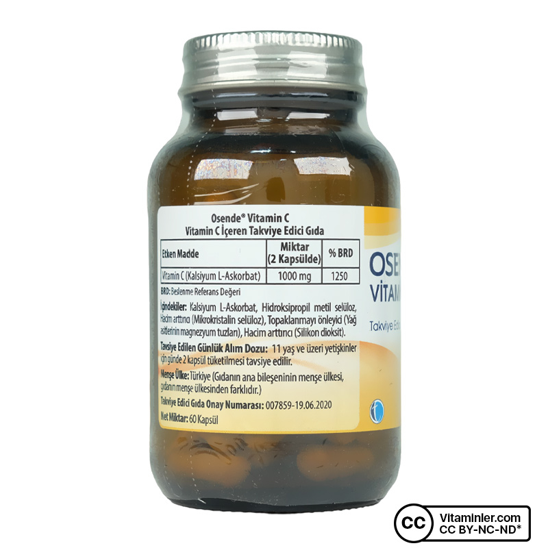 Osende C Vitamini; servis başına 1000 mg C vitamini sunan ve vegan kullanımına uygun olan bir gıda takviyesidir. Formülünde yer alan kalsiyum L-askorbat, C vitamininin düşük asidik yapıya sahip formlarından biridir.