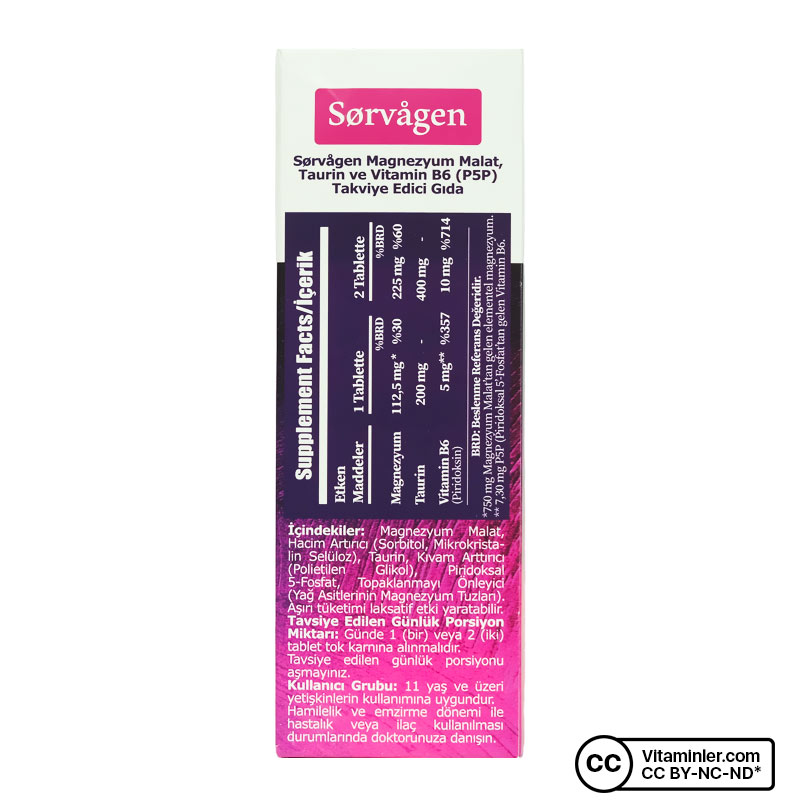 Sorvagen Magnezyum B6, magnezyum malat ve vitamin B6 kombinasyonunu bir arada sunar. Magnezyum ve B6 bileşenlerine ek olarak Taurin içermesi ile öne çıkar.