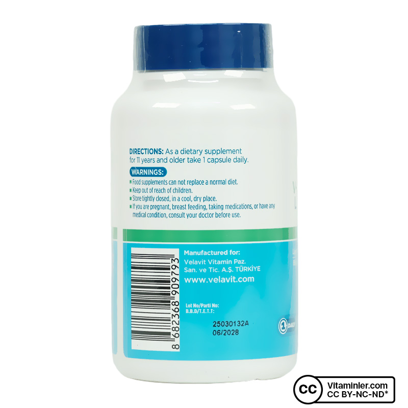 Velavit V-Curcumin Liposomal 30 Kapsül, zerdeçal kökünden elde edilen kurkumin içeriğine sahiptir. Formül, piperin (BioPerine®) ve lipozomal taşıyıcı sistemle birleştirilerek hazırlanmıştır. Bu yapı, ürünün zerdeçala özgü sarı rengini veren aktif bileşeni kapsül formunda sunar.